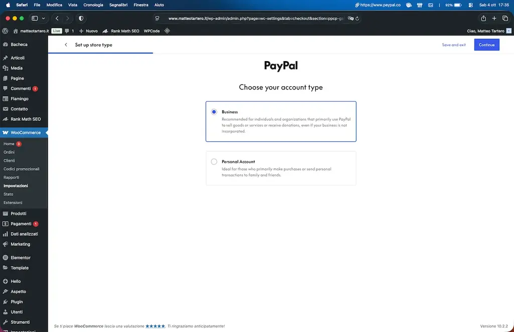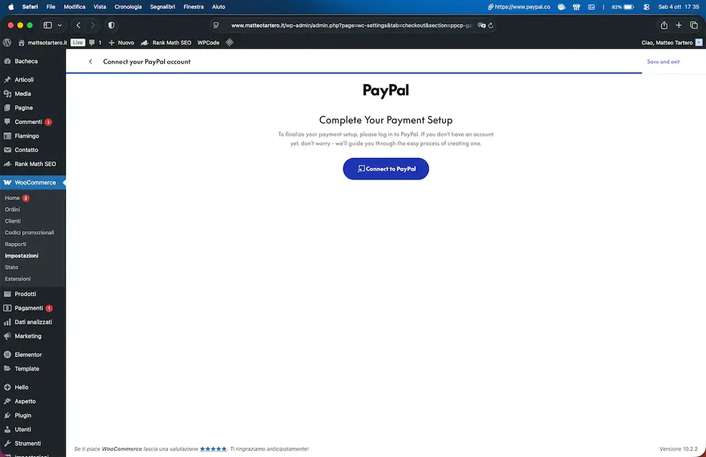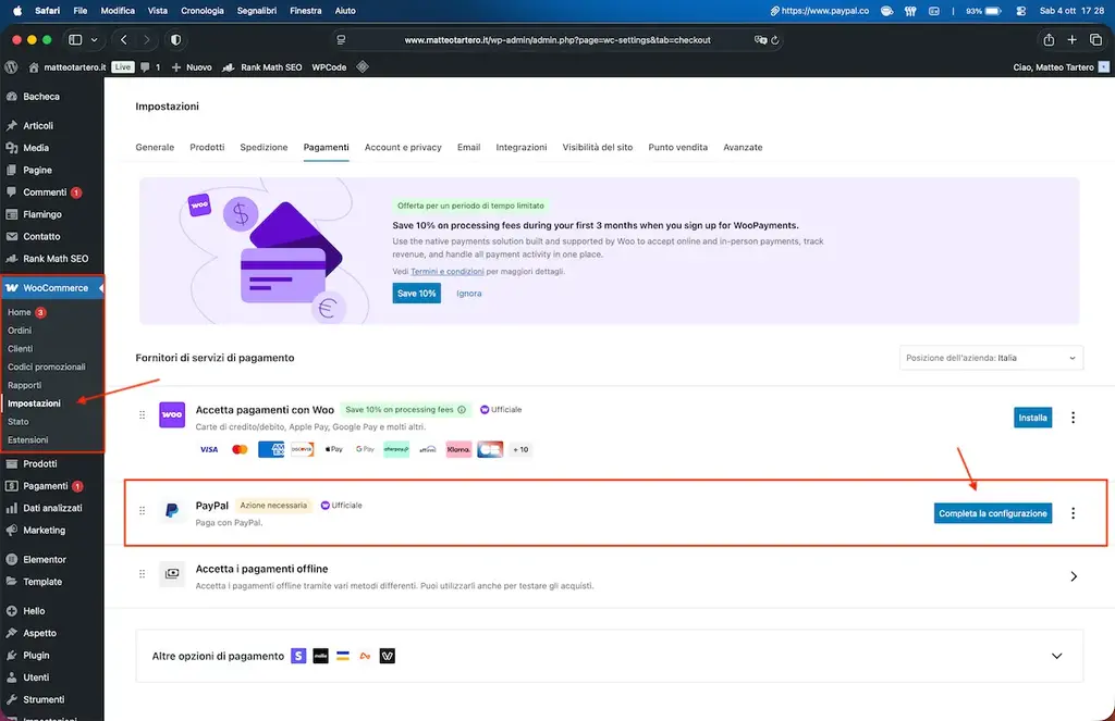 Alla voce PayPal, clicca su Completa la configurazione e segui gli step. Ti lascio degli screenshot qua sotto per renderti la procedura più chiara.