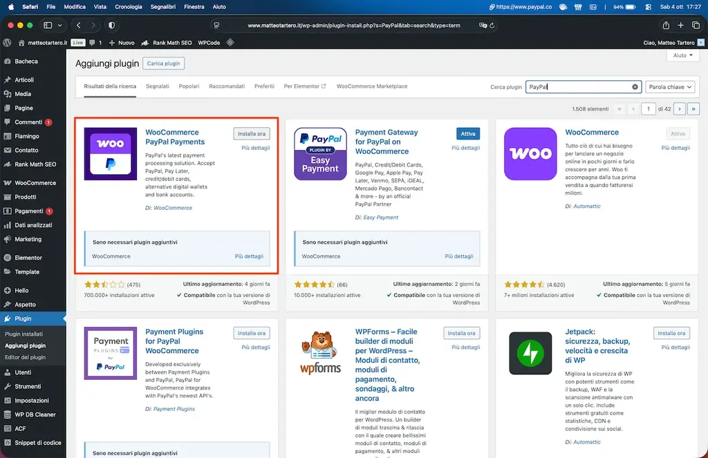 Passo 2 – Installare il plugin WooCommerce PayPal Payments