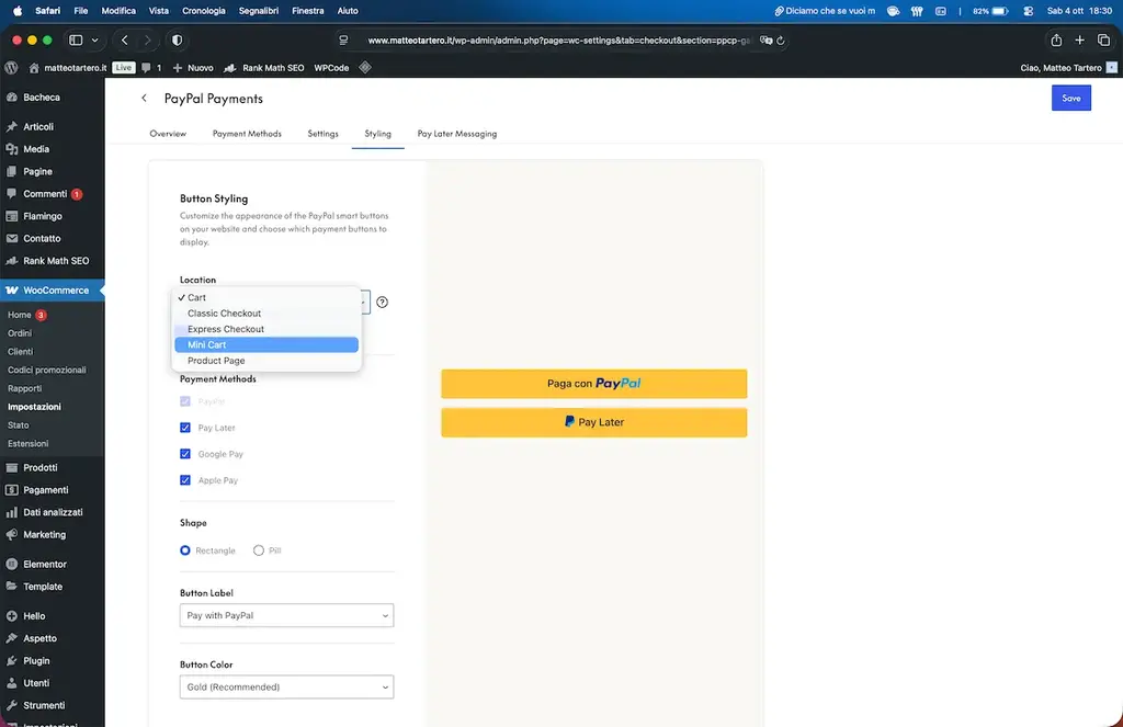 Le impostazioni del plugin finiscono sostanzialmente qua. Una volta settato il tutto comparirà il tasto acquista nel tuo sito.